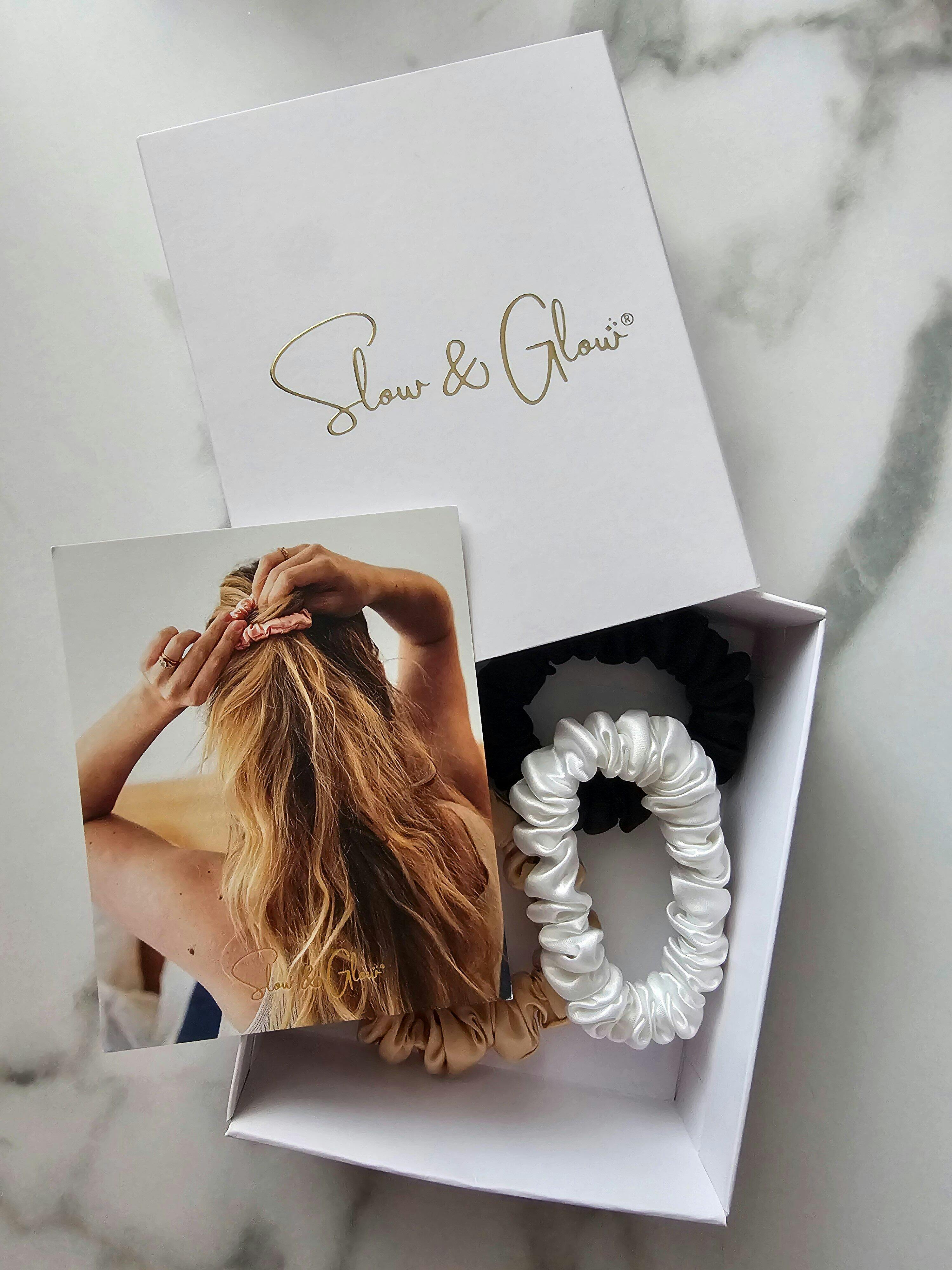 Trio d'élastiques cheveux en soie upcyclée • coffret à personnaliser
